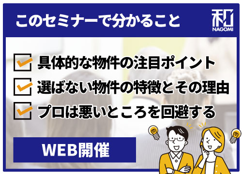 本セミナーでは、損をしない物件選びのための5つのポイントや、