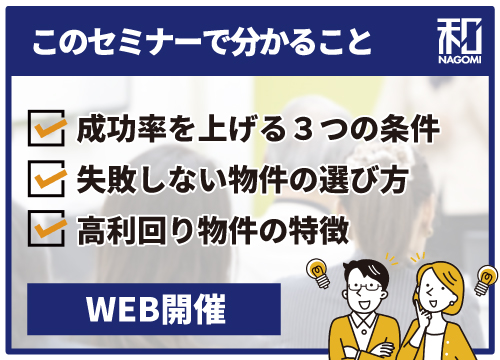 本セミナーでは、需要の高いエリア、入居者が選ぶ物件の特徴など、不動産投資を成功させるために抑えておきたいポイントを解説します。利回り重視で物件選びをしている方はぜひご確認ください!